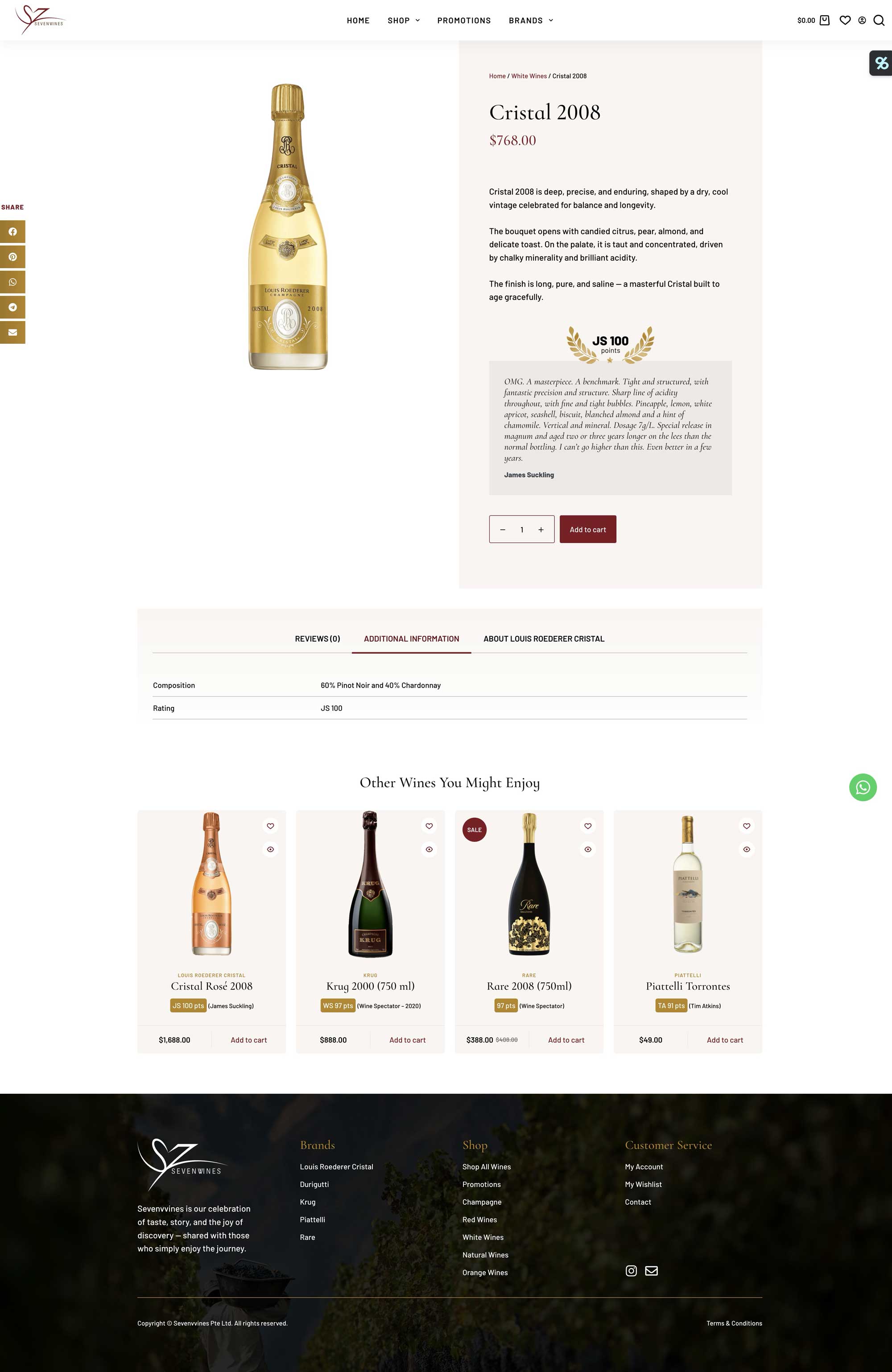 I set up WooCommerce as the backbone and integrated HitPay as the payment gateway. Product pages got a custom layout and not just the default WooCommerce template so each wine could be presented properly with the details that actually matter to buyers, such as the wine’s ratings.